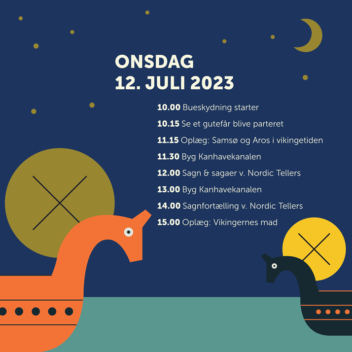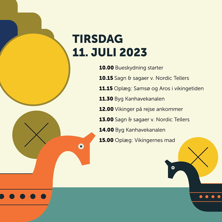 Vi får besøg af en falkoner, en gruppe rejsende vikinger på hesteryg og Nordic Tellers kommer og bringer de mange sagnfortællinger om Samsø til live.