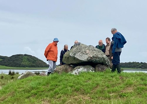 Ind imellem bliver der også anledning til at tage på ekskursion ud til Samsøs fortidsminder. Enten fordi der kan være en interessant forbindelse til en oldsagssamling, vi netop sidder og arbejder med, eller bare som led i undervisningen om Samsøs stenalder.